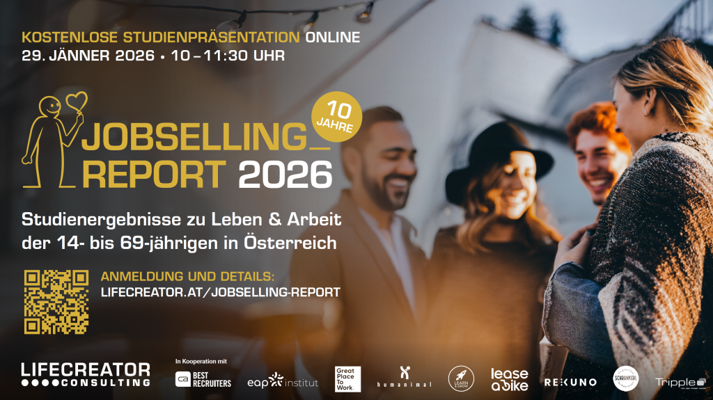 Der Jobselling Report 2026 ist mehr als eine Studie – er ist ein Spiegel der Lebensrealitäten der arbeitenden Menschen in Österreich. Was Menschen im Leben bewegt, prägt auch ihre Einstellung zum Beruf. Persönliche Werte, Lebensumstände und Zukunftserwartungen bestimmen, wie Menschen sich am Arbeitsplatz verhalten, was sie motiviert – und was sie brauchen, um langfristig bleiben zu wollen.